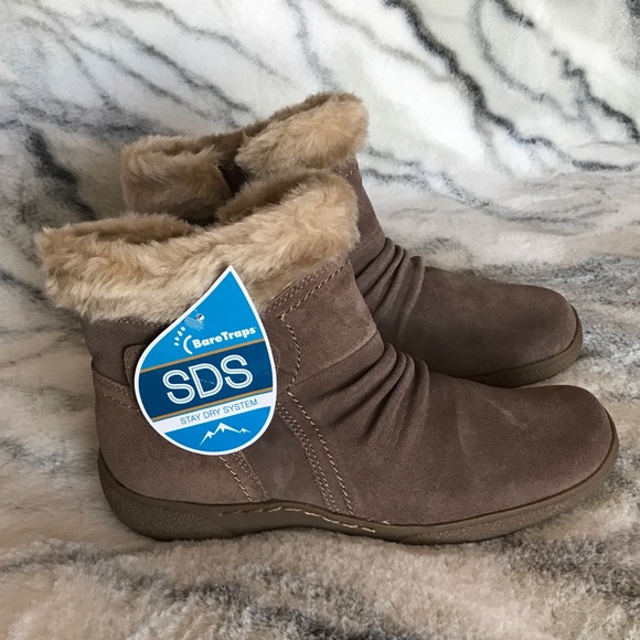 The inside is completely lined for warmth and comfort. Featuring Baretraps Stay Dry System your feet will stay warm and dry. Free shipping for many products. You can zoom in as well. Practically Brand-new bare Traps Stay Dry System boots only worn once last Winter they are Fur lined with a side zipper and buckle look on the other side. SDS boots are made with a water resistant treatment on the upper allowing rain to bead off. Danney will be your go-to tall boot this season. Made using the Stay-Dry System technology this boot features a plush warm lining waterproof seams and an inside zipper to protect you from the elements. Refer to all pictures.