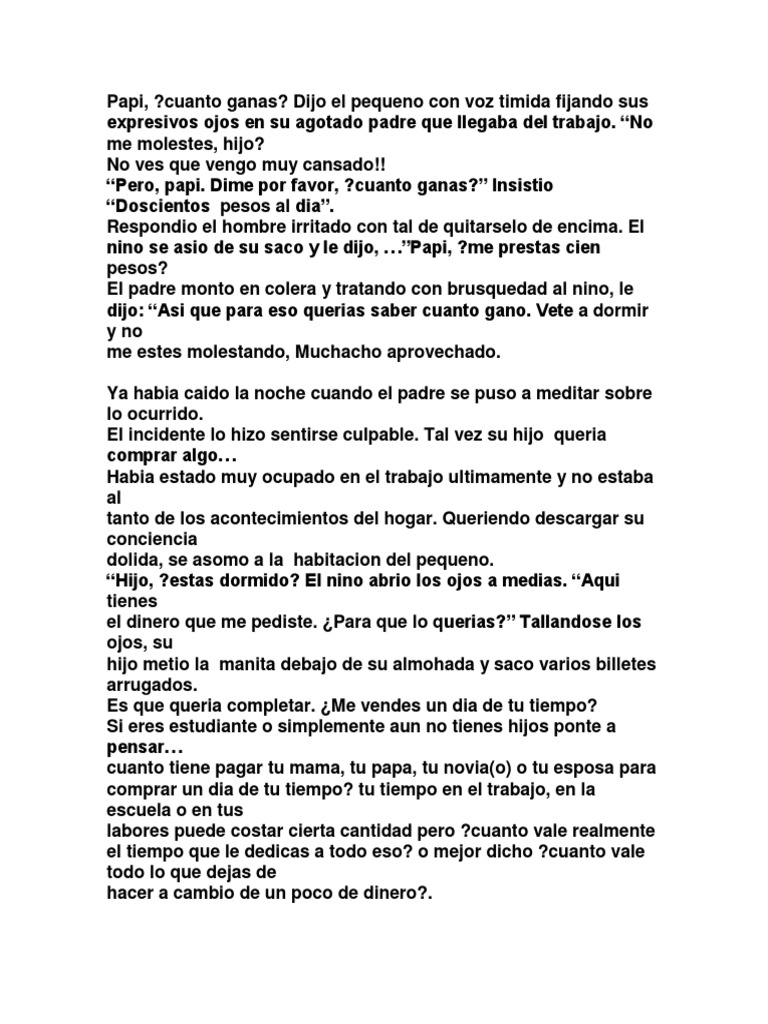 Gracias por ser la luz en los momentos oscuros la esperanza en los malos momentos y el coraje cuando el miedo me superaba Descansa en paz papá. El siguiente texto describe de manera divertida la incoherencia de un hombre por darle a su familia lo que él nunca tuvo. Un padre es un hombre que espera que sus hijos sean tan buenos como él hubiera querido ser.